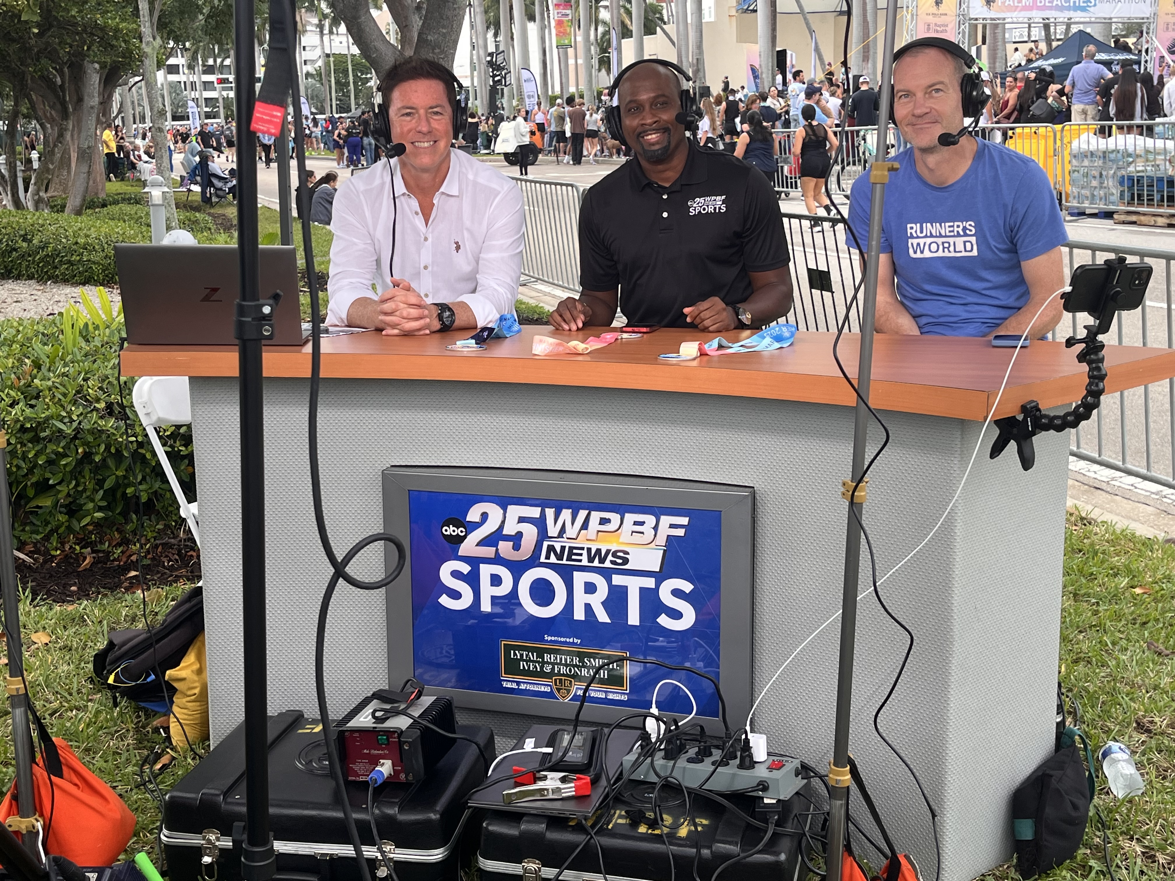 7. Live WPBF 25 News Coverage (ABC Broadcast) of the 2025 U.S. Polo Assn. Palm Beaches Marathon With (L to R) J. Michael Prince, President and CEO of USPA Global/U.S. Polo Assn., Shayne Wright, WPBF 25 News Director, and Jeff Dengate, Runner’s World Founder